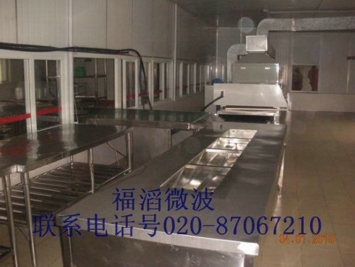 微波能是一種新的能源,它利用自身的交變頻率,能使極性分子在較短的時間內(nèi)達(dá)到快速加熱和回溫的目的;并且利用自身產(chǎn)生的熱效應(yīng)和生物效應(yīng),殺滅物料中的霉菌、大腸桿菌及致病菌,從而使一些快餐企業(yè)在生產(chǎn)過程中采用隧道連續(xù)式微波設(shè)備對盒飯進(jìn)行快速回溫、殺菌,起到了前所未有的效果。